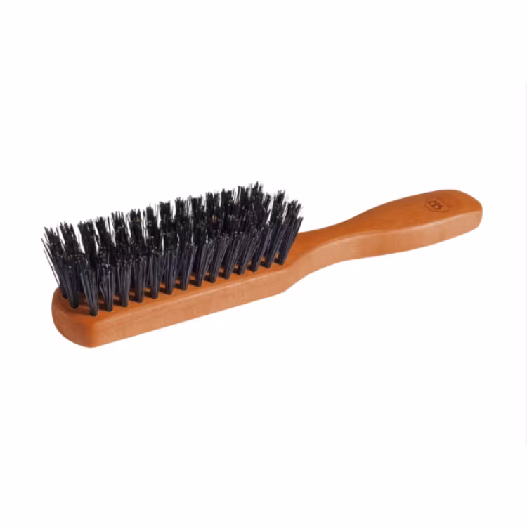 Hårborste med medelhård svart svinhårsborst från vildsvin. Skaft av inoljat päronträ med lite rödaktig ton. Handgjord i Tyskland.