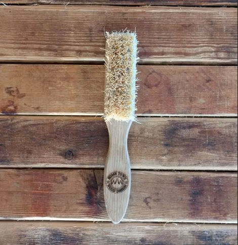 En borste av återvunnen ek och tampico. Borsten är gjord av vår lokala borstbindare och trähantverkare Gabriel Andersson, boende och verksam i Bygdeå. Borsten passar som skäggborste, hårborste, skoborste och som borste till ditt husdjur.