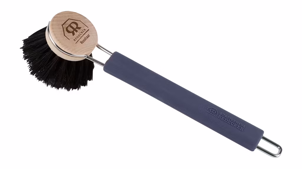 Handtag för diskborste i rostfritt stål och silikon med möjlighet att enkelt byta ut diskbortshuvudet för ett mer hållbart alternativ.